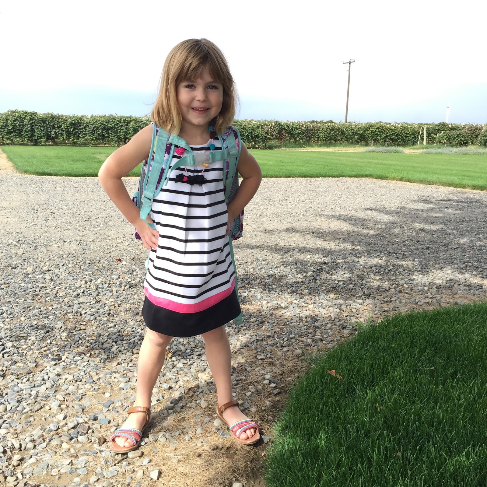 Charlotte is all about accessories. This outfit was chosen JUST so she could wear her doggy necklace from Grandma on the first day!